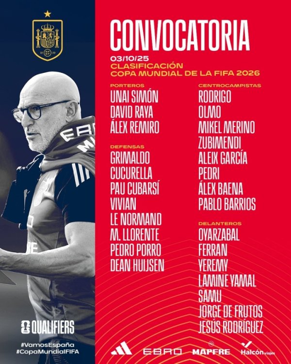 英超赛程免费直播 10月03日讯 西班牙队官方公布了最新一期的国家队大名单,亚马尔、佩德里领衔,苏维门迪、赫伊森等多人在列。卡瓦哈尔、费尔明等人因伤落选。这批球 ...