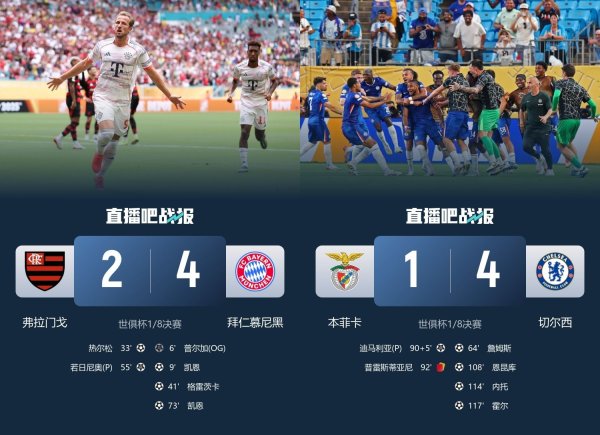 拜仁引援动态 06月30日讯 世俱杯1/8总决赛 ,本菲卡1-4不敌切尔西,弗拉门戈2-4不敌拜仁,C组和D组的小组第1双双出局。 小组赛阶段,C组第1的本菲卡 ...