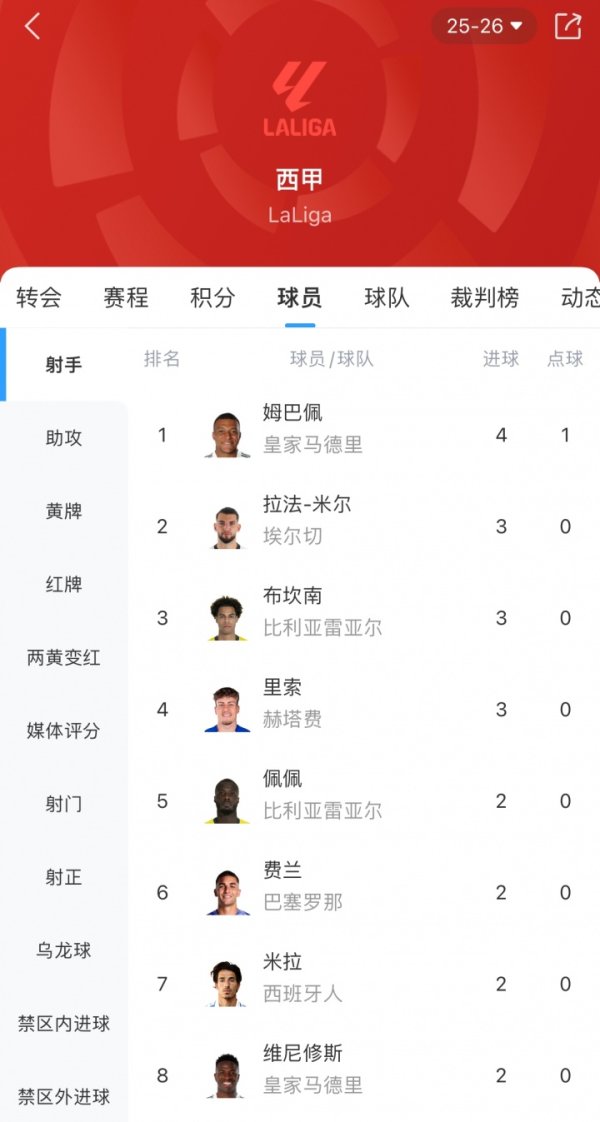 09月14日讯 西甲第4轮法甲最新赛果,皇马2-1战胜皇家社会,姆巴佩传射建功,他四轮打入4球领跑西甲射手榜。 法甲最新赛果 ...