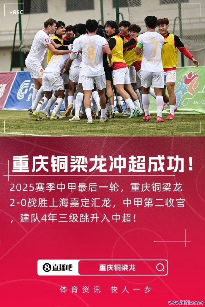11月8日讯 中甲赛季收官战结束,重庆铜梁龙2-0战胜上海嘉定汇龙,最终排名积分榜第二x西甲,冲超成功。