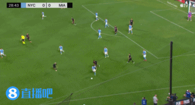 第29分钟,纽约城前场球员梅尔考连过迈阿密国际后防两人,打门击中立柱!差点完成一条龙↓