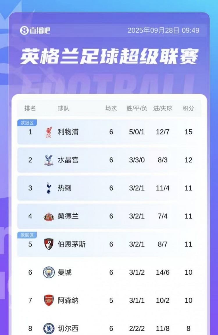 据Opta数据统计 ,这是自2001年3月以来,球队首次在职业联赛 进行五轮或更多轮次后跻身积分榜前四。