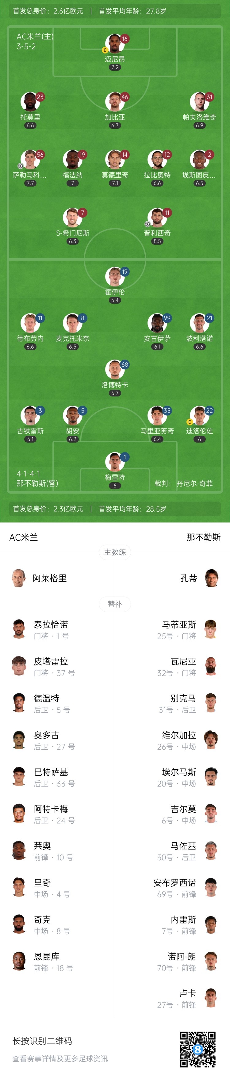 第31分钟,帕夫洛维奇左路推进,横传进危险区域 内,福法纳一脚做球,普利西奇直接打门建功!半场完成传射!AC米兰2-0领跑 那不勒斯↓