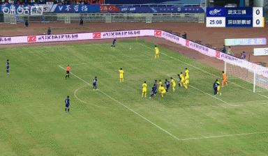 加时补赛5分钟。上半场赛事 结束,武汉三镇0-1深圳新鹏城。