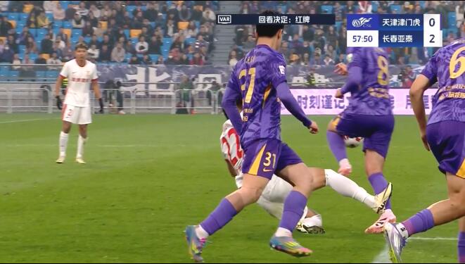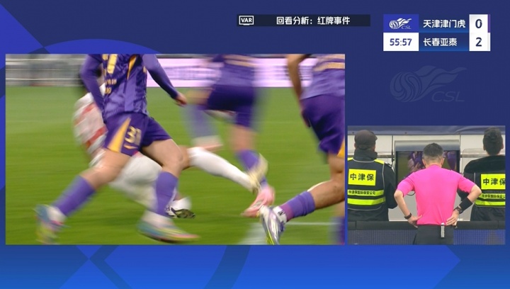10月25日讯 津门虎vs亚泰第58分钟,王禹放铲蹬踏哈达斯小腿,主裁先是给了警告 ,苏超直播随后长时间观看VAR回放后改判驱逐 ,将其直红罚下!