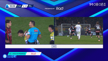 裁判 在VAR的介入检查后没有判决 十二码球,米兰暂时客场应战 2-1领跑 !
